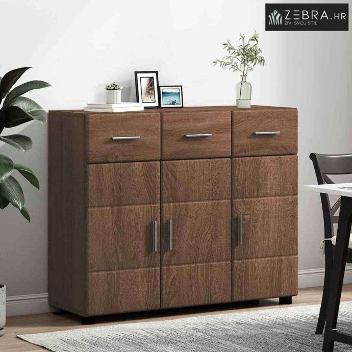 Ovaj lijepo dizajniran ormar od konstruiranog drva savršeno se uklapa u moderne dnevne boravke, pružajući privlačnost i funkcionalnost. Ima čiste linije i minimalnu dekoraciju, idealan za one koji žele jednostavnost i praktičnost u svom namještaju. Pravo pravokutno tijelo i mat završna obrada čine ga izrazom sofisticiranosti i praktičnosti, prilagodljivog različitim prostorima u kući ili uredu.