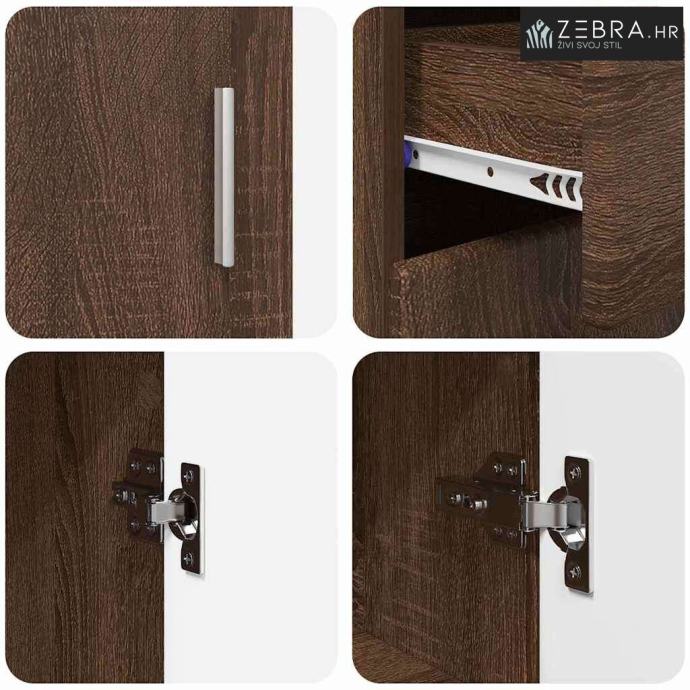 Premium konstruirano drvo: Ovaj ormar napravljen je od konstruiranog drva, biranog zbog svoje sjajne čvrstoće i stabilnosti. Ovaj materijal je poznat po svojoj otpornosti i dugotrajnosti, pa izdrži redovnu upotrebu. Njegova površina naglašava jednostavnu eleganciju ormara, savršeno se uklapa u suvremene prostore.