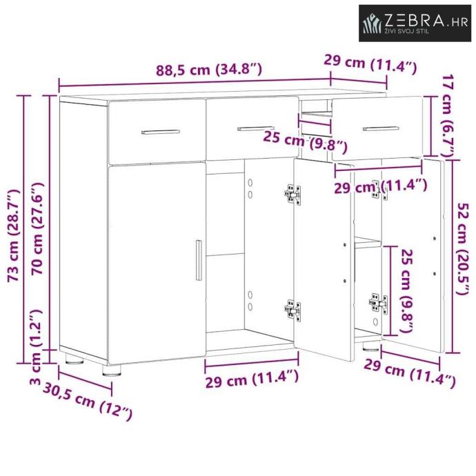 Sveukupne dimenzije: 88,5 x 30,5 x 73 cm (D x Š x V)