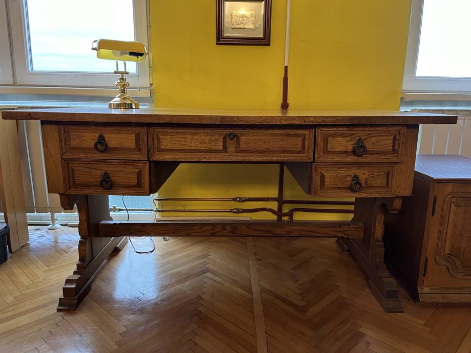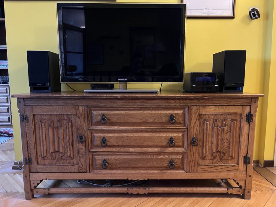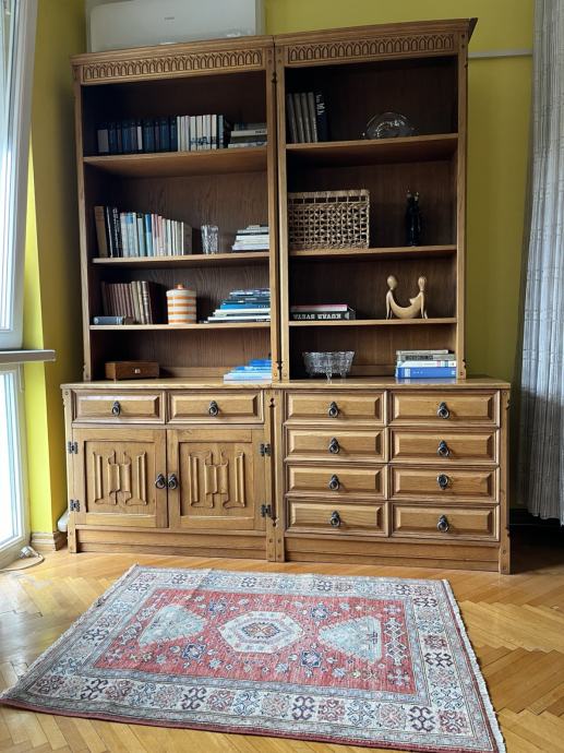 Namještaj je kombinacija masivnog hrasta i hrastovog furnira, proizveden u Meblu krajem 70-tih.