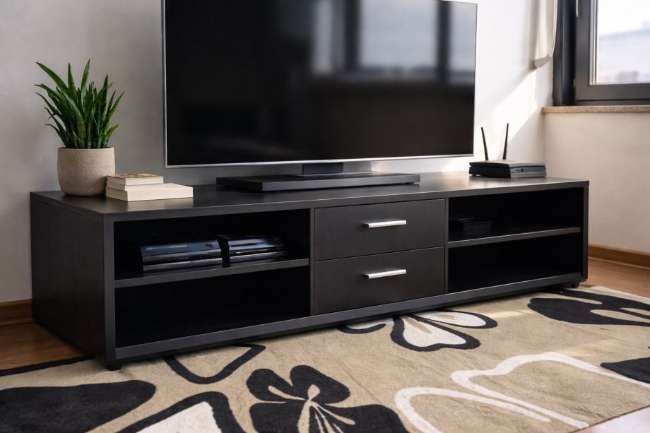 - 2 otvorena segmenta sa svake strane (podesiva polica – super za konzole, receiver, router, Playstation…)