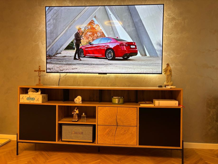 Komoda je u dobrom stanju, stabilna i očuvana. Ima dovoljno prostora za pohranu i može poslužiti kao TV element ili za dnevni boravak.