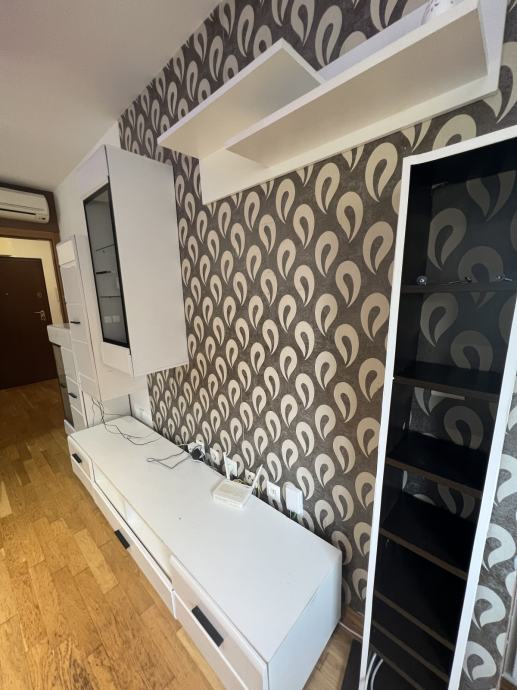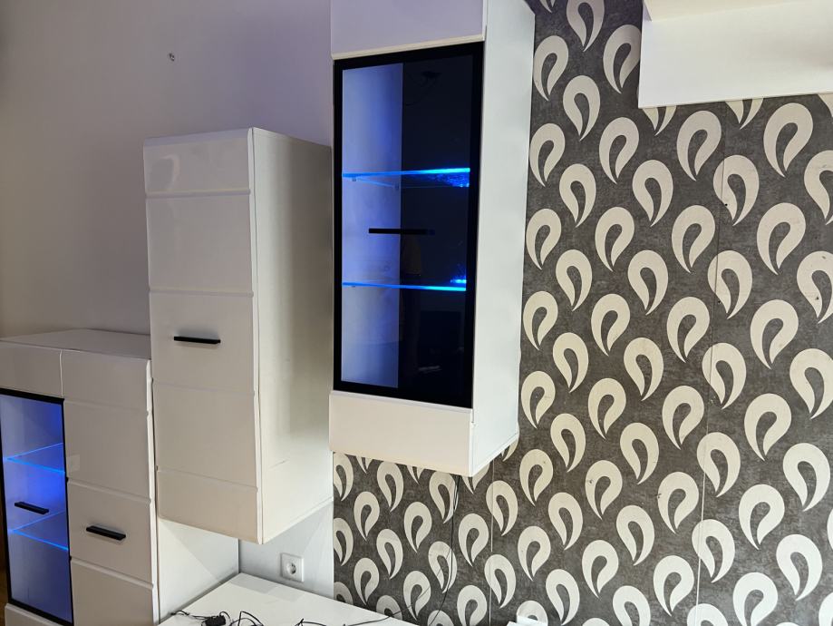 Elegantni regal za dnevni boravak bijele boje visokog sjaja.