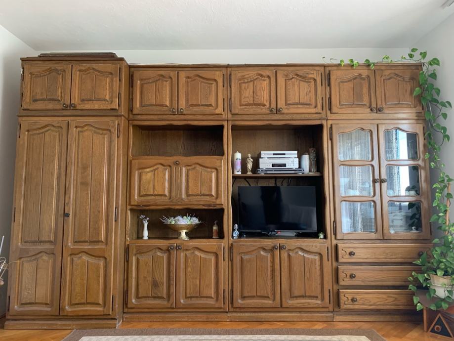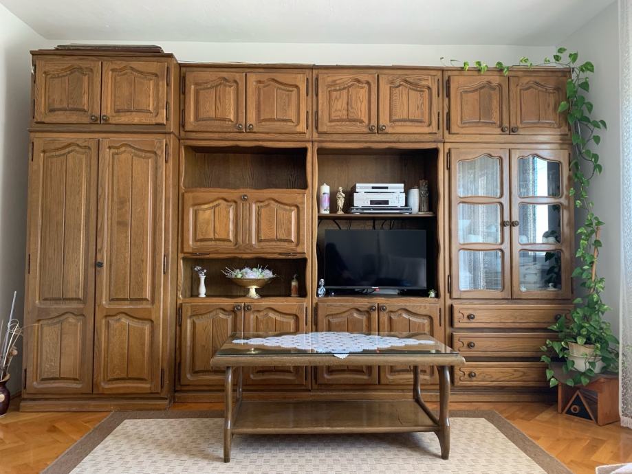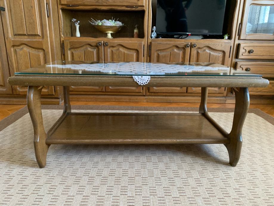 Regal za dnevnu sobu(puno drvo) + stolić(puno drvo) sa staklom