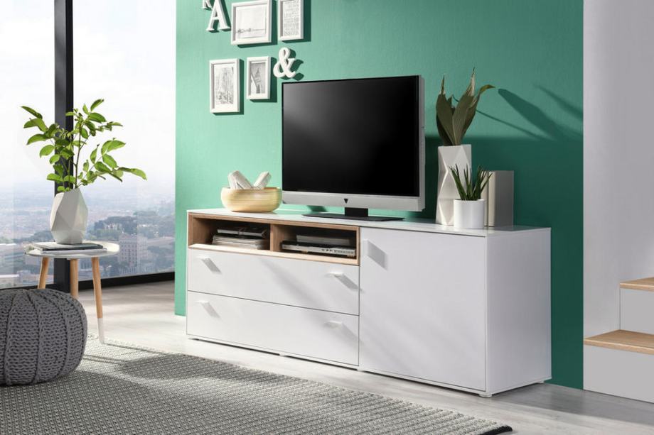 NISKA TV KOMODA (170,3 x 60,2 x 43 cm) bijela, boje hrasta, očuvana