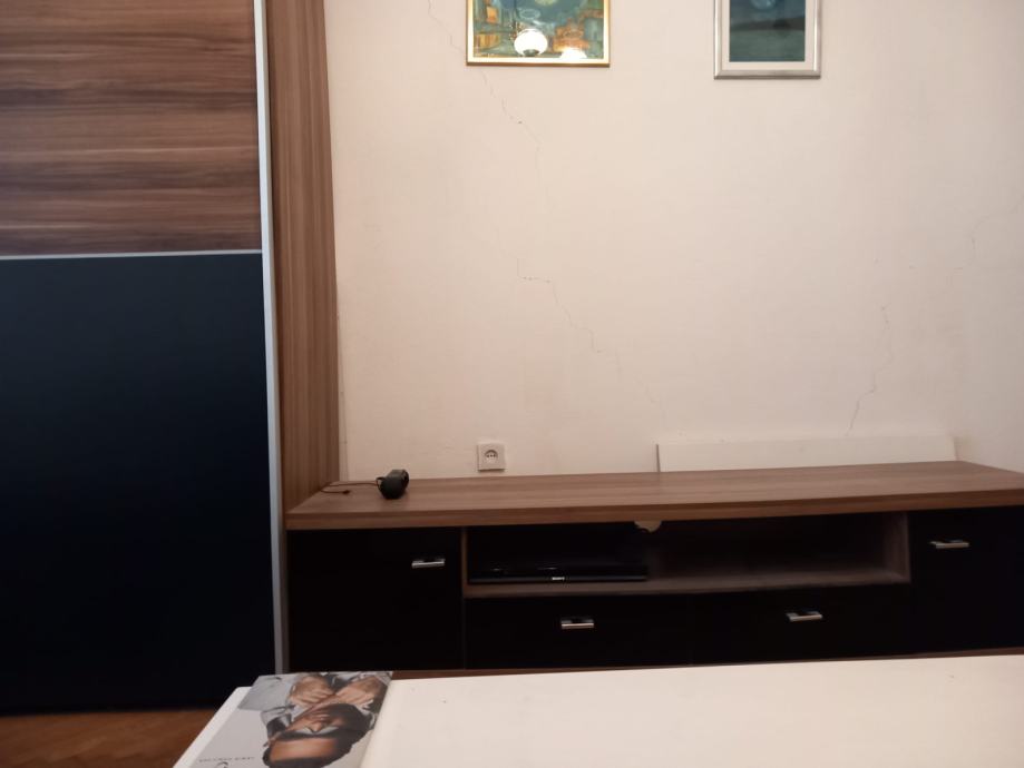 Prodajem nisku TV komodu u kombinaciji teksture drva i crne boje. Četiri odvojena spremišta.