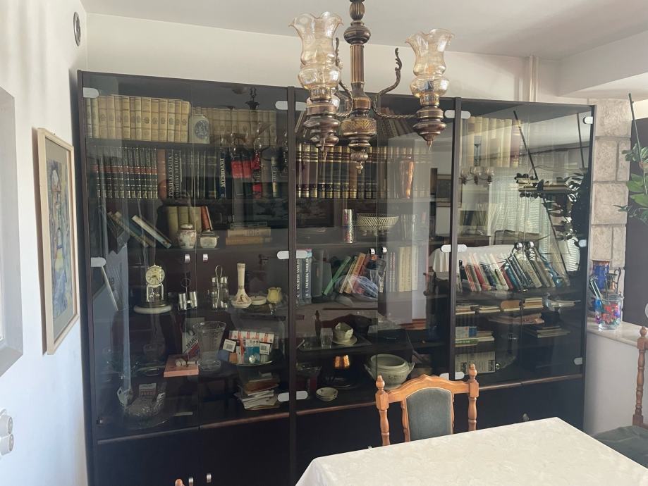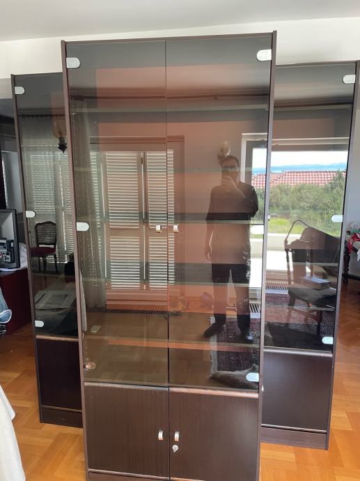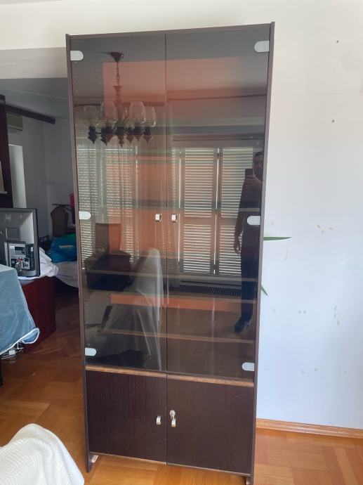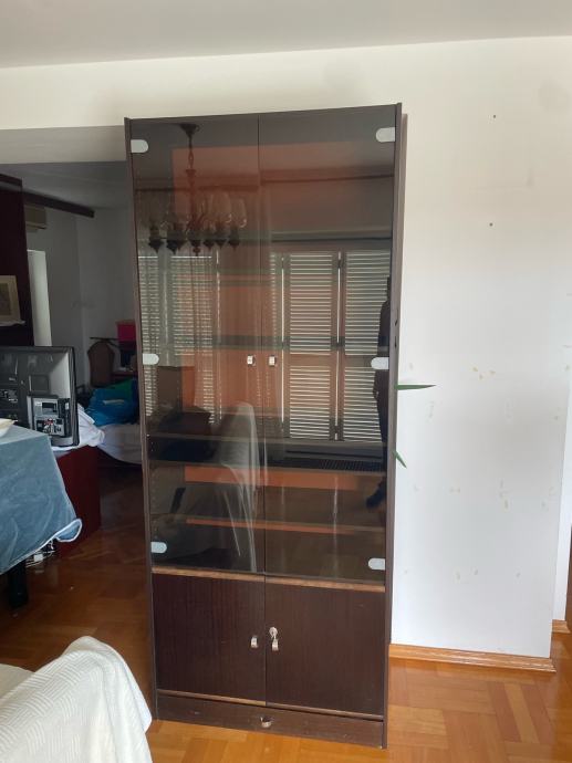 Hitno jeftino prodajem očuvani stakleno drveni ormar regal za knjige. Sastoji se od 3 dijela i otvaraju se na obje strane vrata. Visine je oko 210cm širine.