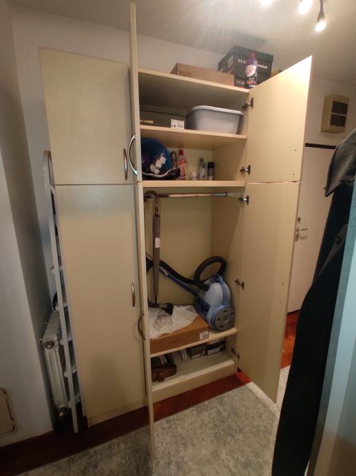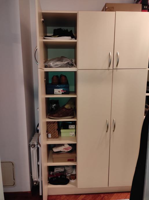 Prodajem ormar za hodnik nježno žute boje iz 2013. godine, rađeno po mjeri kao i sve druge stvari iz stana koje prodajem. Stanje očuvanosti je 9/10.