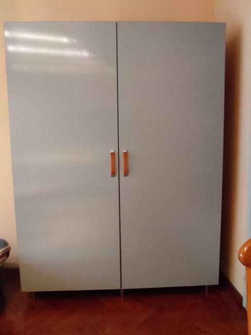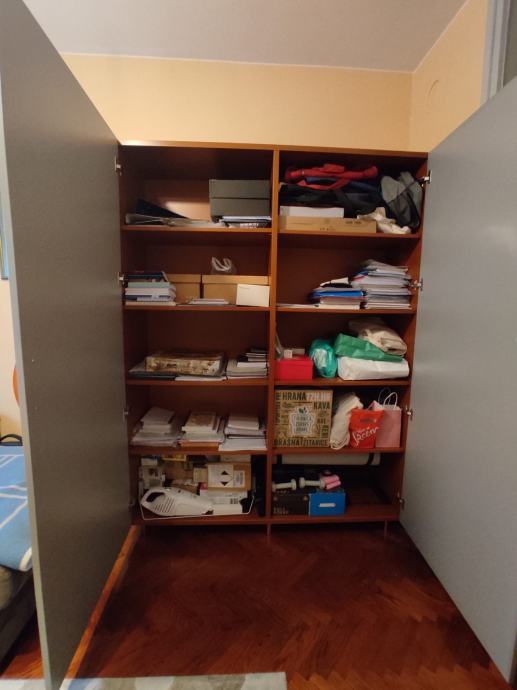 Prodajem plavo-sivi ormar rađen po mjeri za moj dnevni boravak 2013. godine. Ormar je na nogice (robot može proći ispod ormara) i ima suptilno vidljivu rebrastu površinu izvana (pogledaj fotografiju slikanu izbliza). Stanje očuvanosti je 10/10. Prodajem ga radi kompletne renovacije stana iako je očuvan, lijep i funkcionalan.