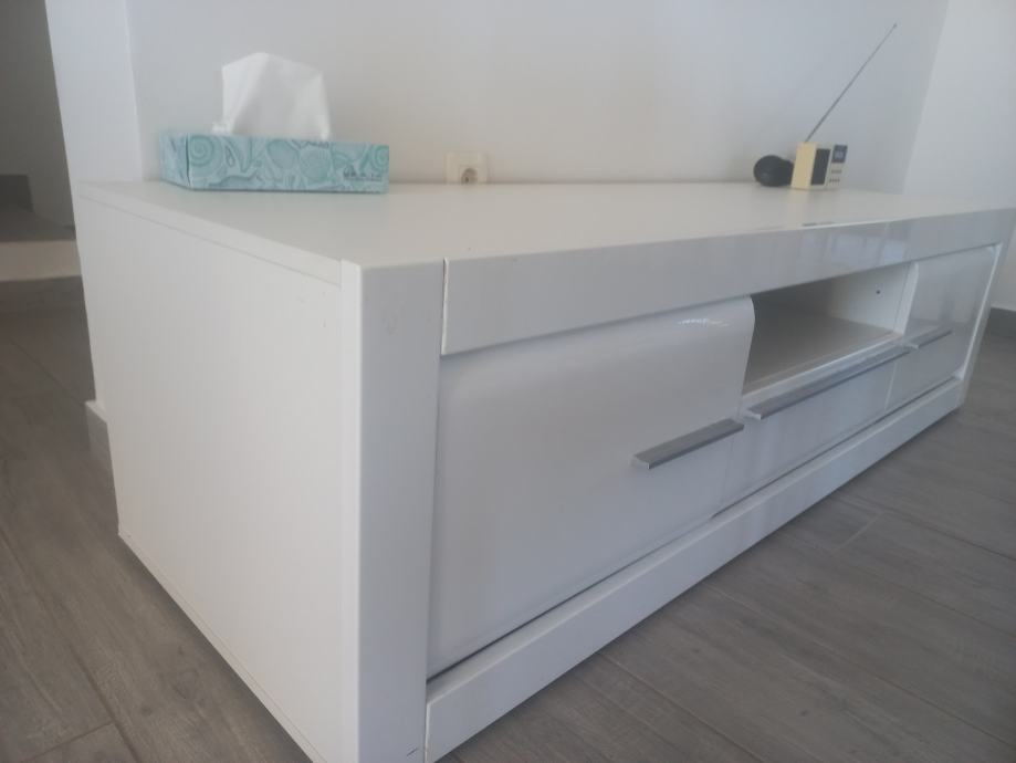 Prodajem ormarič, beli, visoki sjaj, sa predalima i otvorom za video ili radio. Malo rabljen - izgleda kao nov. Dimenzije: 160x45x52 - dubina.