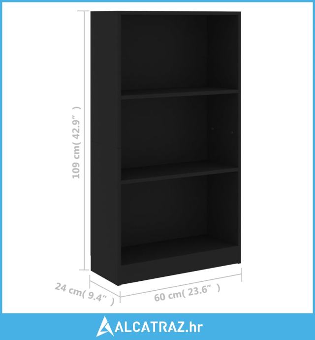 Ormarić za knjige s 3 razine crni 60 x 24 x 108 cm od iverice - NOVO