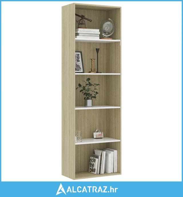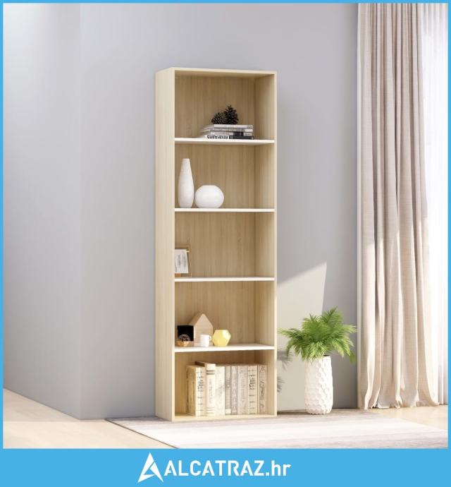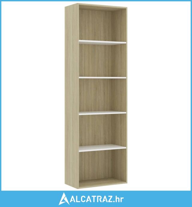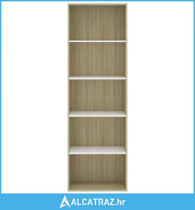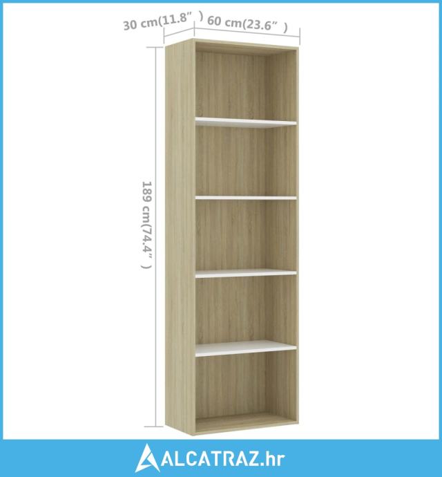 Ormarić za knjige s 5 razina bijeli i hrast 60x30x189 cm drveni - NOVO