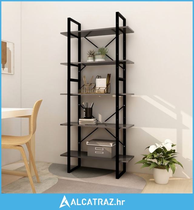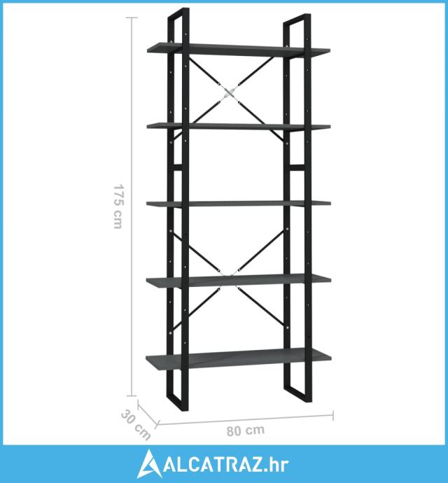 Ormarić za knjige s 5 razina sivi 80 x 30 x 175 cm od iverice - NOVO