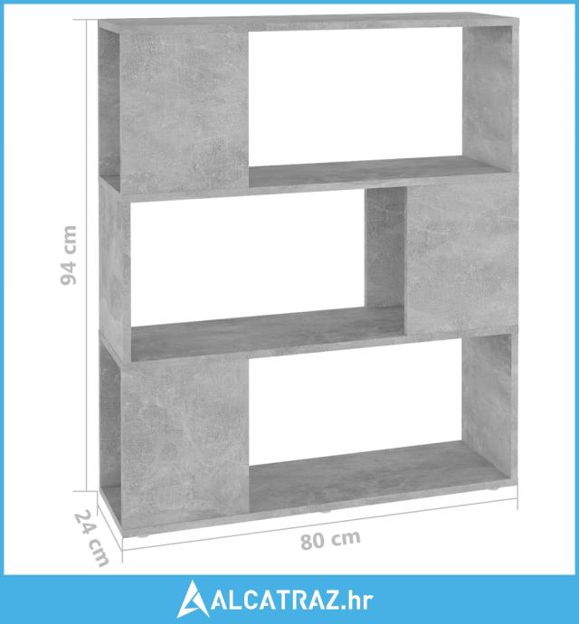 Ormarić za knjige / pregrada boja betona 80x24x94 cm drvena - NOVO