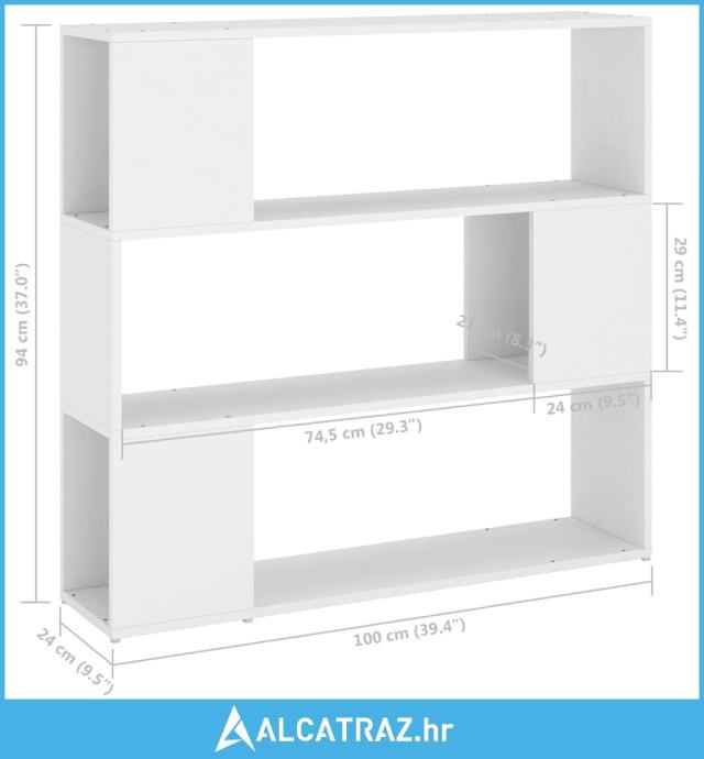 Ormarić za knjige / sobna pregrada bijeli 100 x 24 x 94 cm - NOVO