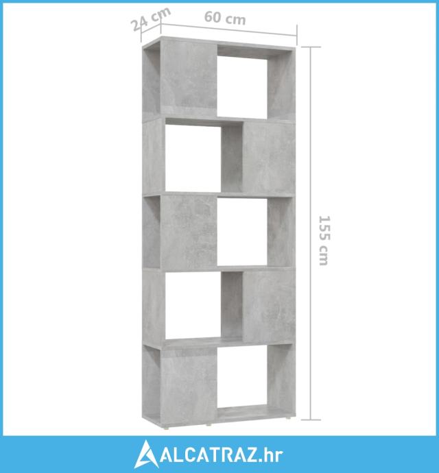 Ormarić za knjige / sobna pregrada boja betona 60 x 24 x 155 cm - NOVO