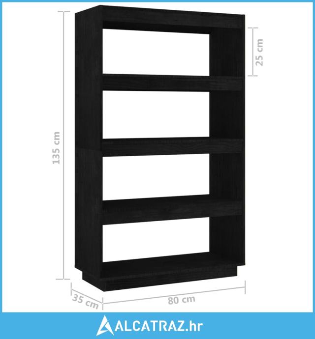 Ormarić za knjige / sobna pregrada crni 80x35x135 cm borovina - NOVO