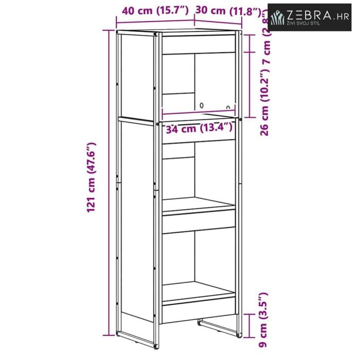 Sveukupne dimenzije: 40 x 30 x 121 cm (D x Š x V)