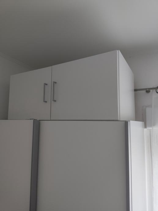 Bijeli ormarić koji se može koristiti samostalno ili kao nadogradnja na veći ormar. Širina = 95,5cm; dužina = 50cm; visina = 40cm. U jako dobrom stanju!