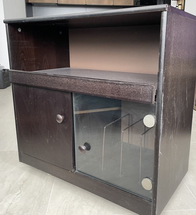 Ormarić, predviđen za smještaj manjeg TV prijamnika, crne boje, širine 74cm, visine 74cm, te dubine 40cm
