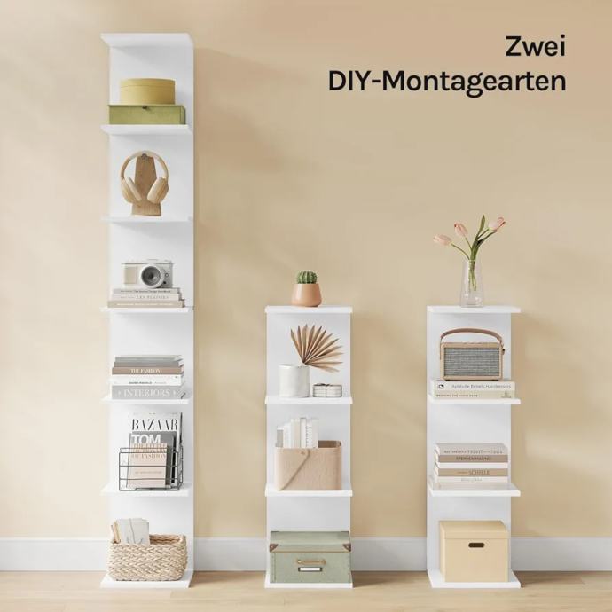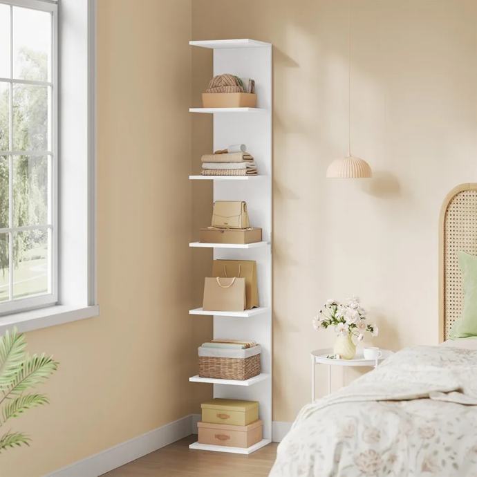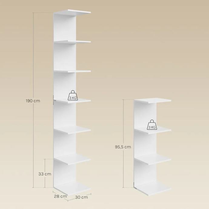 Polica sa 7 slojeva za dnevni boravak, spavaću sobu, ured, uska, samostojeća, zidna, drvena, 30 x 189,5 x 28 cm, bijela