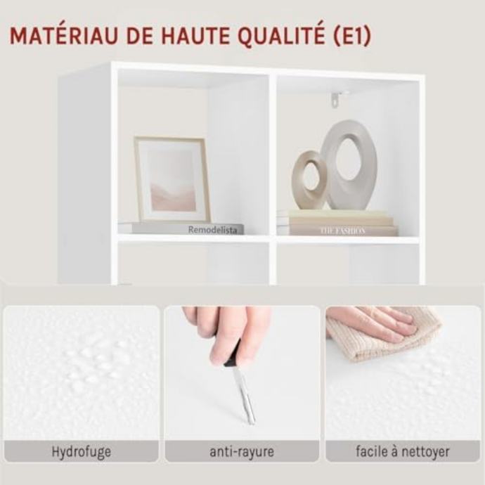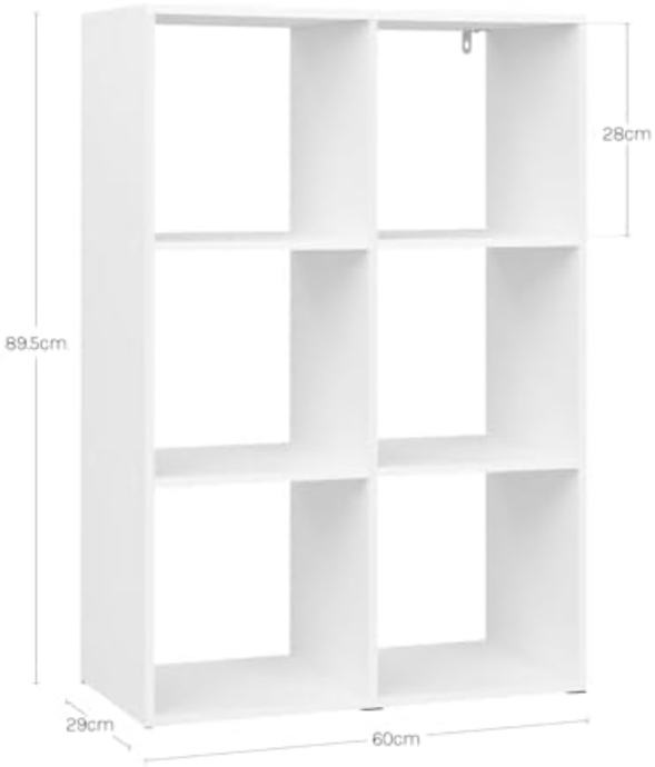 Specifikacije: Materijal: Iverica E1 kvalitete Dostupne boje: bijela, svijetli hrast Dimenzije (D x Š x V): 60 x 29 x 89,5 cm. Dimenzije svake kocke: 28 x 29 x 28 cm. Nosivost svake kocke: 15 kg. Neto težina: cca. 12,3 kg. Sadržaj kutije: 1 x WOLTU kocka za knjige, 1 x set pribora, 1 x korisnički priručnik (engleski jezik nije zajamčen).