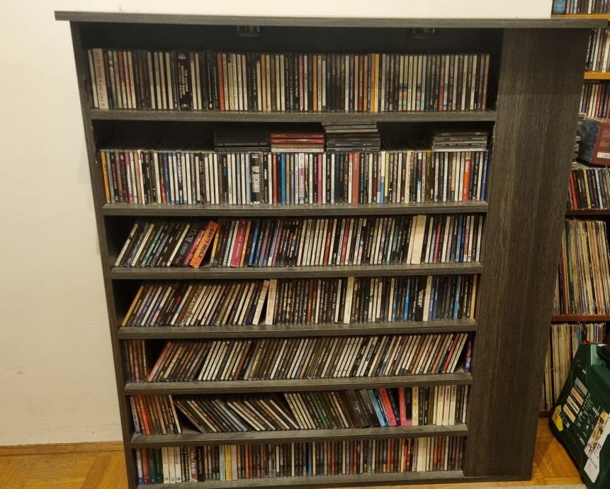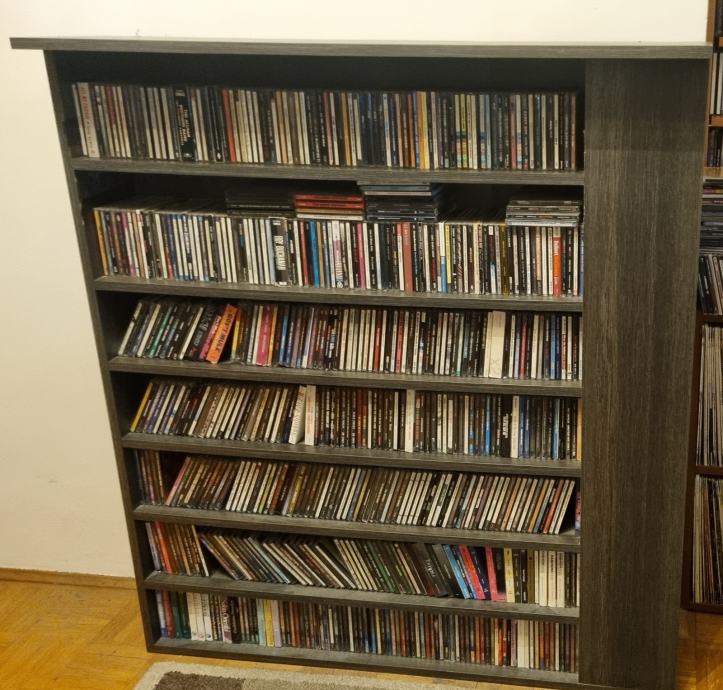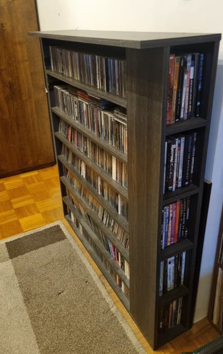 Polica za cd i dvd, gornja polica malo preuređena, š 110, v 122, d 26.