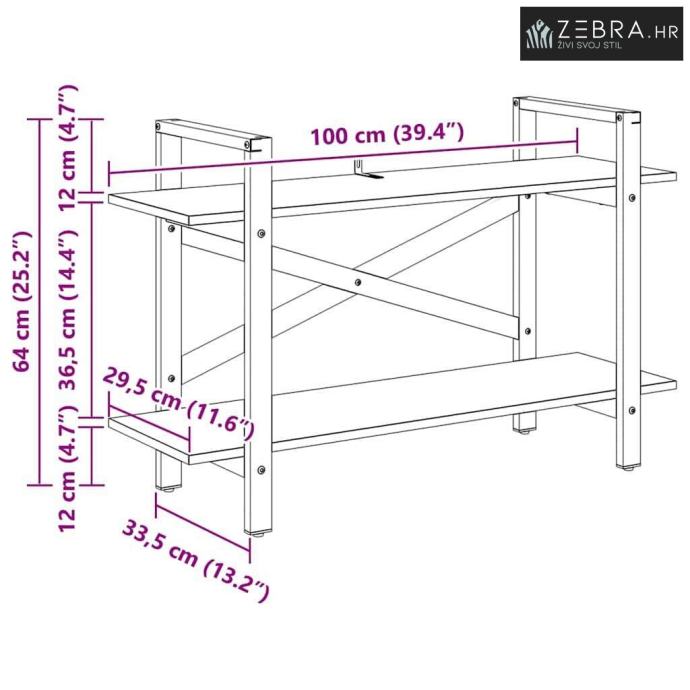 Sveukupne dimenzije: 100 x 33,5 x 64 cm (D x Š x V)