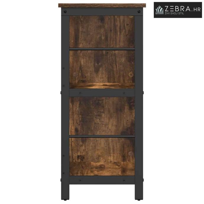 Funkcionalne komponente: Polica se ističe praktičnim skladištem od dasaka koje dolaze s čvrstim čeličnim okvirom, što osigurava stabilnost i sofisticiran izgled, idealna za organiziranje svakodnevnih stvari.