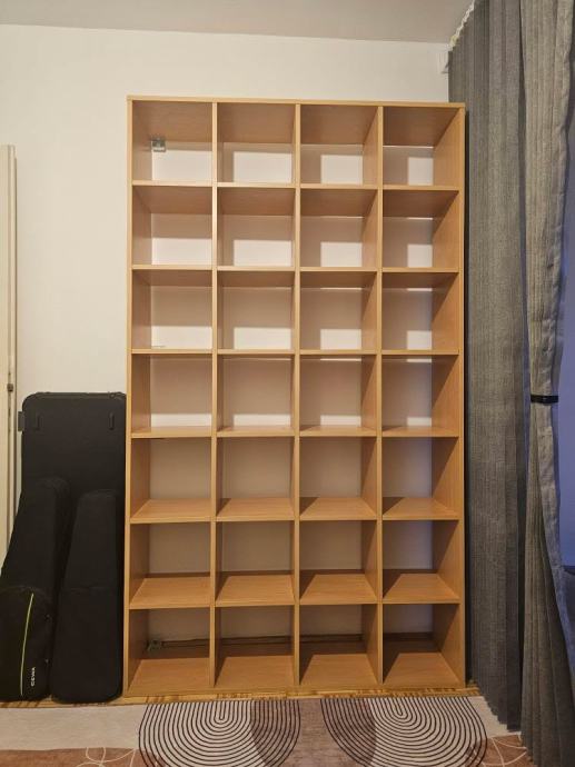 Kvalitetna drvena polica dimenzija 210×120×30 cm, kantiranih rubova i cvrste izrade. Svijetlo drvo, montaza na zid, nije moguce rastavljanje. Polica se nalazi na 4.katu zgrade bez lifta - potrebno je doci po nju i prevesti ju u komadu.