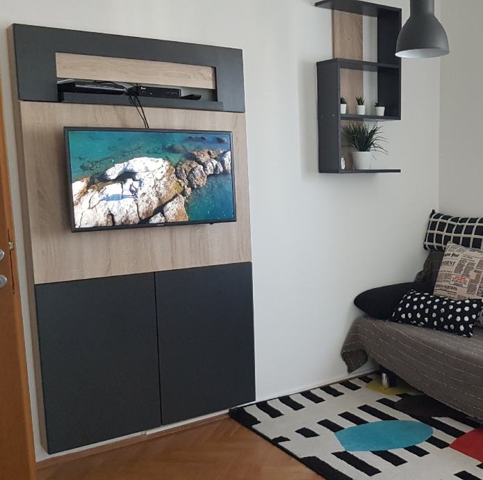Prodajem policu za TV s nosačem. Rađeno po mjeri da se sakriju žice. Razlog prodaje preuređenje stana. Potrebno je osobno preuzeti u Novom Zagrebu na Kajzerici.