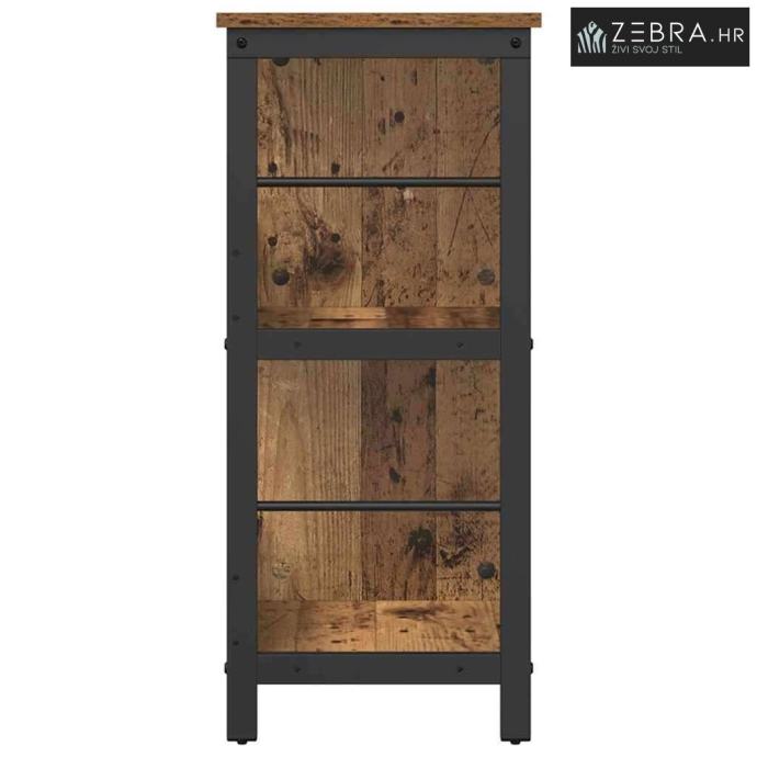 Funkcionalne komponente: Polica se ističe praktičnim skladištem od dasaka koje dolaze s čvrstim čeličnim okvirom, što osigurava stabilnost i sofisticiran izgled, idealna za organiziranje svakodnevnih stvari.