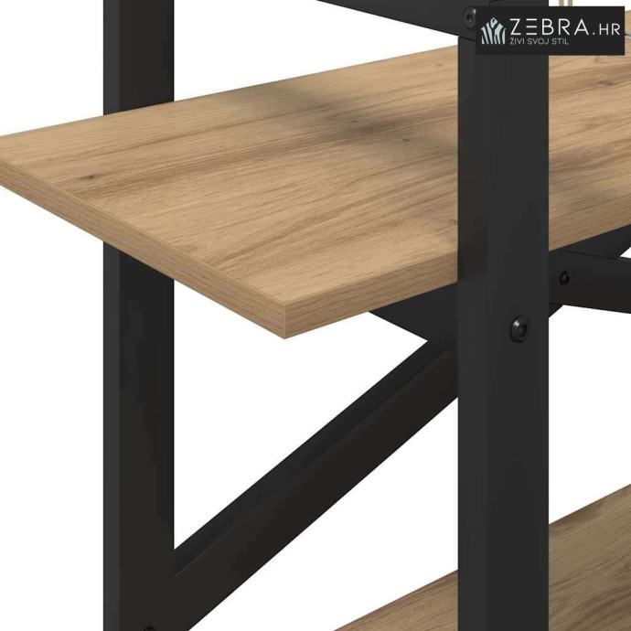 Čvrst čelični okvir: Čelični okvir daje robusnost, donoseći moderan industrijski izgled. Minimalistički pravokutni čelični podupirač osigurava stabilnost i snagu, omogućujući ti da napuniš police koliko želiš.