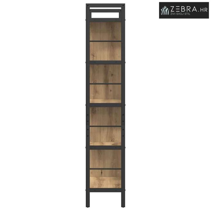 Ova industrijska polica za knjige donosi modernu sofisticiranost uz kombinaciju policama od konstruiranog drva i čeličnog okvira, savršena za urbane prostore. Jednostavan pravokutni dizajn dodaje industrijski šarm, savršeno za one koji žele unijeti dozu stilizirane udobnosti u svoje domove. Mjesto za knjige, dekoracije i uspomene čini je vrlo praktičnom.