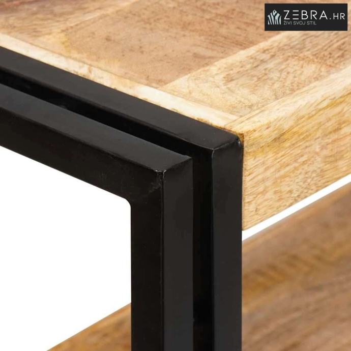 Industrijska estetika: S snažnim kontrastom smeđeg drva i glatkog crnog metala, ova polica utjelovljuje industrijski stil. Ova vizualno privlačna kombinacija unosi toplinu i dubinu, čineći je istaknutim komadom u modernim interijerima.