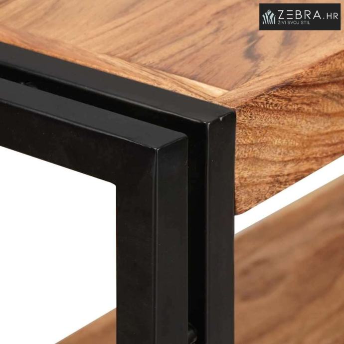 Industrijska estetika: S snažnim kontrastom smeđeg drva i glatkog crnog metala, ova polica utjelovljuje industrijski stil. Ova vizualno privlačna kombinacija unosi toplinu i dubinu, čineći je istaknutim komadom u modernim interijerima.