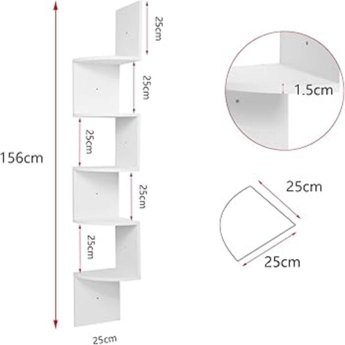 Informacije o proizvodu: Veličina: cca. 25 x 25 x 156 cm, debljina: cca. 1,5 cm. Umetnite krajeve vijaka u rupe police kako biste je pričvrstili na zid, ali nije prikladno za suhozid.