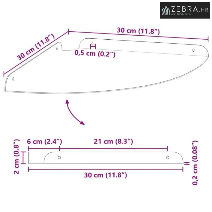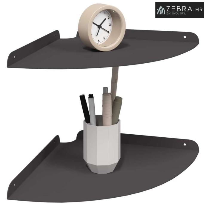 Dizajn koji štedi prostor Dizajnirana da se čvrsto smjesti u kutove, ova polica maksimizira prostor bez zauzimanja previše mjesta. Njen kutni oblik je idealan za manja mjesta, spajajući funkcionalnost i stil.