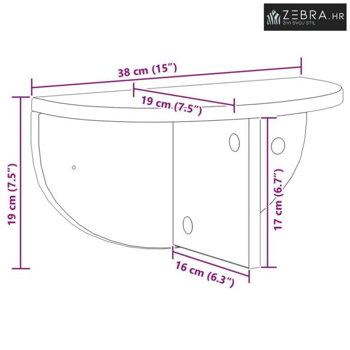 Materijal od konstruiranog drva: Ova polica za zid izrađena je od konstruiranog drva, pružajući stabilnost i otpornost dok zadržava sofisticiranu površinsku obradu. Robustan je i dizajniran za svakodnevnu upotrebu, osiguravajući da izgleda dobro kroz vrijeme. Idealna je za sve koji traže dugotrajnost i profinjen izgled u svom namještaju.
