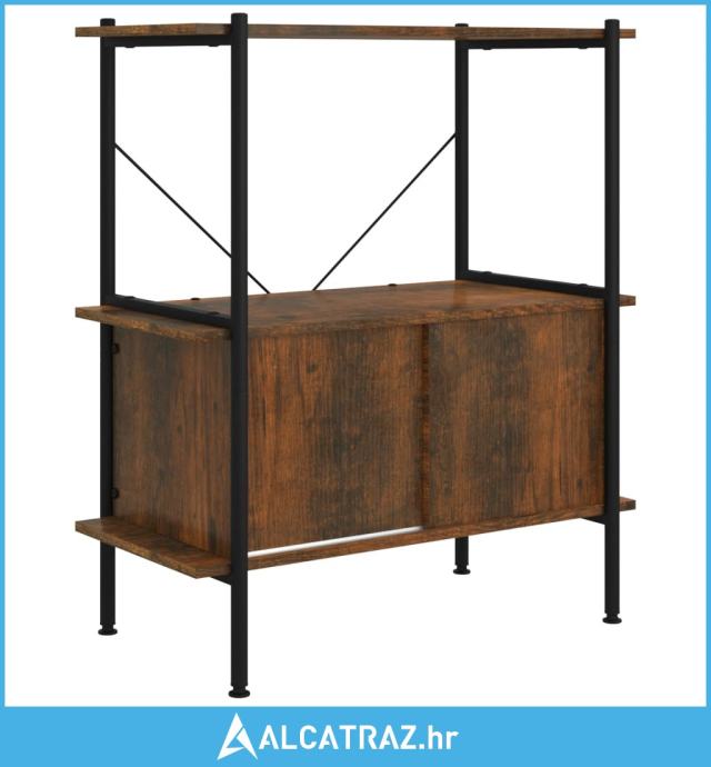 Police s 3 razine i ormarićem 80 x 40 x 92 cm od čelika i drva - NOVO