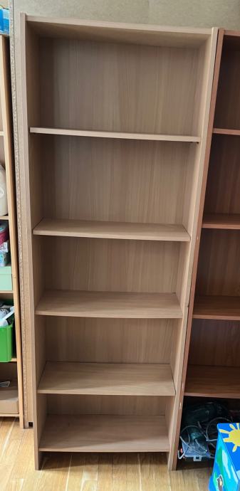 6 POLICA ZA KNJIGE i slično / širina 60,5 cm , visina 175 cm, dubina 20 cm/ 2 bež i 4 boje trešnja