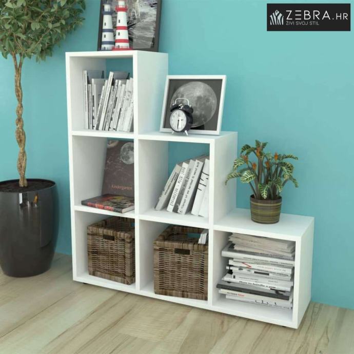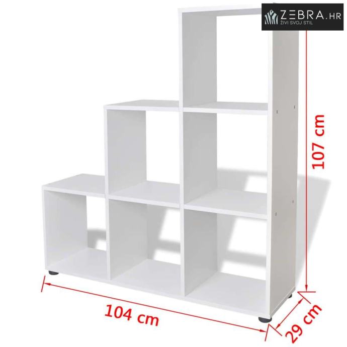 Ovaj upečatljivi regal za knjige ima 6 otvorenih odjeljaka koji služe kao savršeno mjesto za izlaganje predmeta poput knjiga, kolekcionarskih predmeta, fotografija, nagrada, biljaka lončanica itd. Napravljen od visokokvalitetnih materijala, ovaj regal za knjige vrlo je čvrst i izdržljiv.