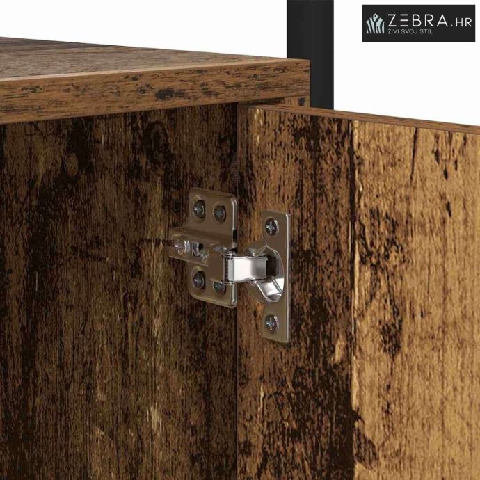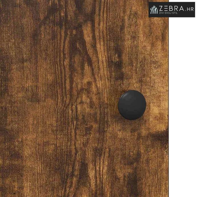 Vrata sa šarkama i kvakama Polica ima vrata sa šarkama od konstruiranog drva uz mat crne kvake koje su elegantne i funkcionalne. Ove komponente osiguravaju lak pristup sadržaju dok zadržavaju moderan izgled.