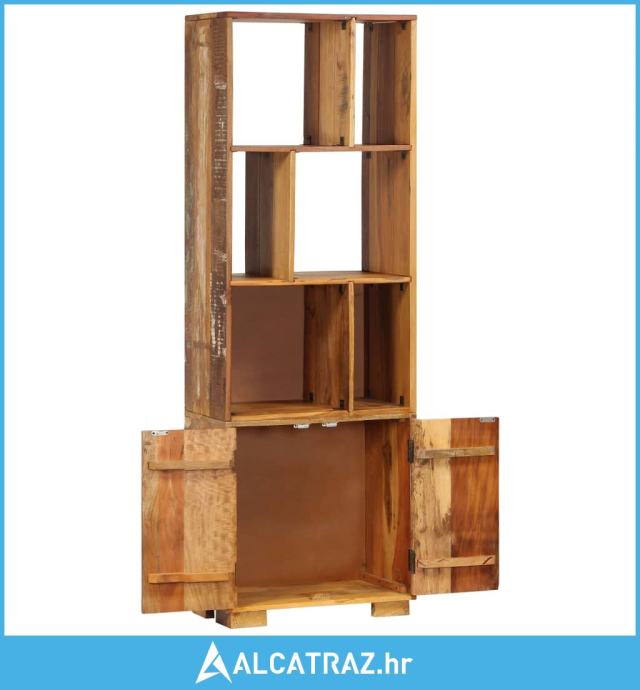 Ove police za knjige u antiknom stilu napravljene su od masivnog obnovljenog drva dobivenog od greda, podova i potpornih greda iz starih zgrada koje su se rušile, a može se sastojati od različitih vrsta drva poput bora, tika, bukve, hrasta, cedra, drva manga, bagrema itd. To znači da obnovljeno drvo zadržava karakteristike tih različitih vrsta drva. Obnovljeno drvo već je ostarjelo, istrošeno vremenom i osušeno, tako da se ne skuplja i ne savija. Svaki korak procesa izveden je s najvećom pažnjom, bilo da se radi o poliranju, bojenju ili lakiranju. Vještina izrade i privlačni drveni godovi čine svaki komad namještaja prepoznatljivim i pomalo drukčijim od sljedećeg. Uz to, ovaj ormarić s policama sadrži 1 pretinac s 2 vrata i 6 odjeljaka, što nudi idealno rješenje za pohranu i izlaganje vaše zbirke knjiga, časopisa, dokumenata, kao i ukrasnih predmeta poput okvira za fotografije i kolekcionarskih predmeta. Sastavljanje je jednostavno.