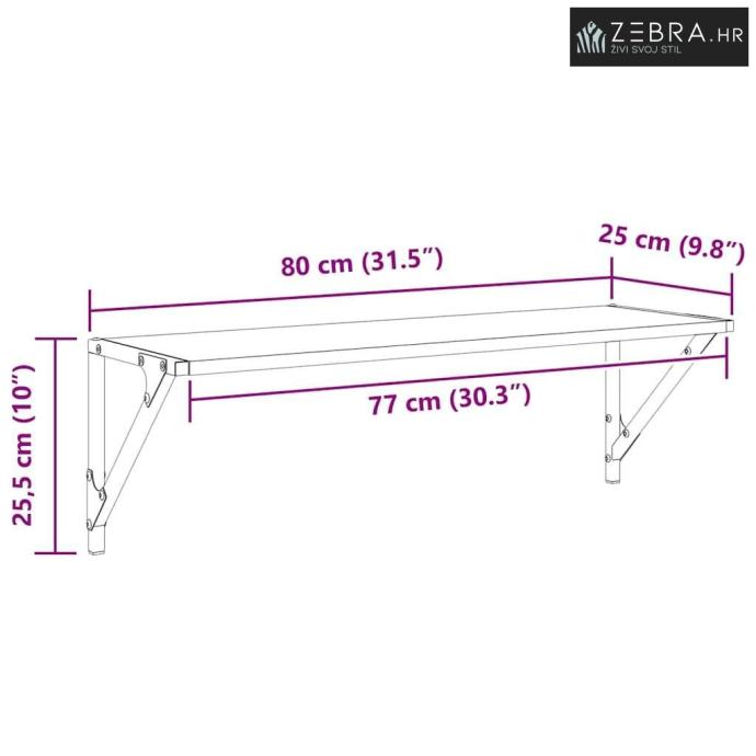 Sveukupne dimenzije: 80 x 25 x 25,5 cm (Š x Dub x V)