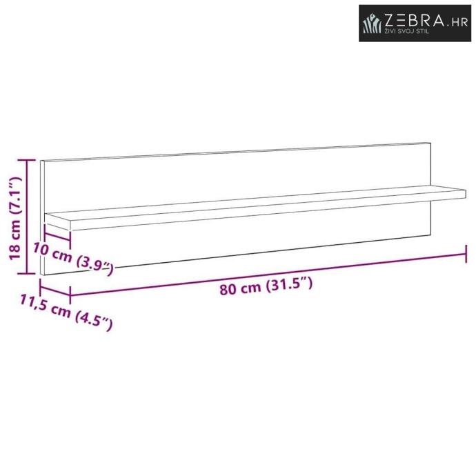 Sveukupne dimenzije: 80 x 11,5 x 18 cm (D x Š x V)