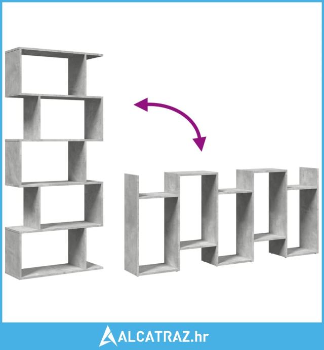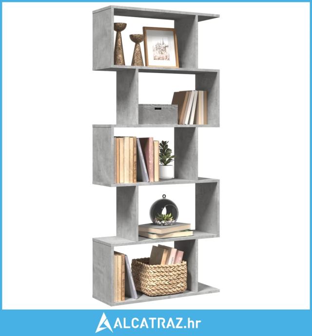 Pregrada / regal za knjige 5 razina sivi 70x24x161 cm drveni - NOVO