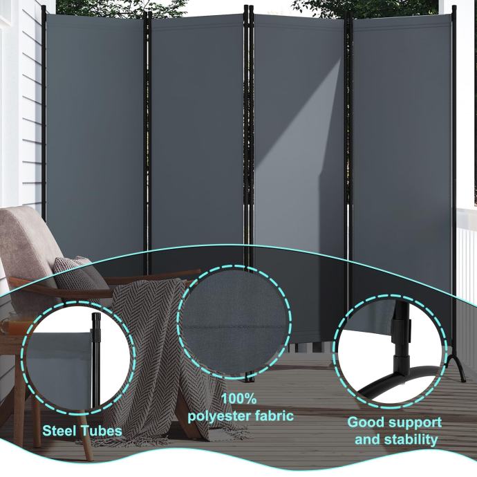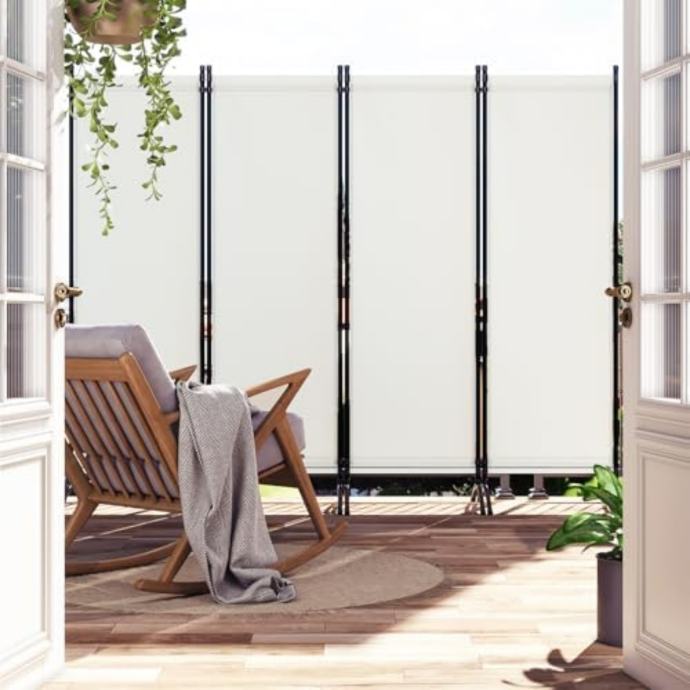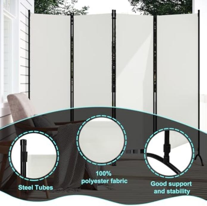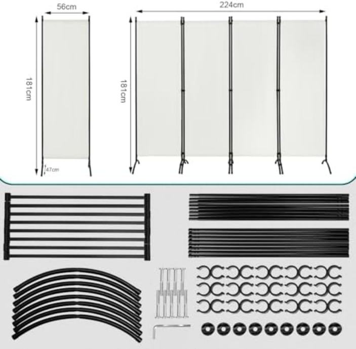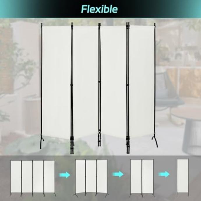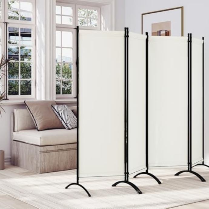 Pregrada za sobu, Zaštitni paravan za privatnost, 4 panela, Sklopivi paravan s metalnim okvirom i podnožjem, Tkanina s PA premazom, Krem, 224 x 182 cm