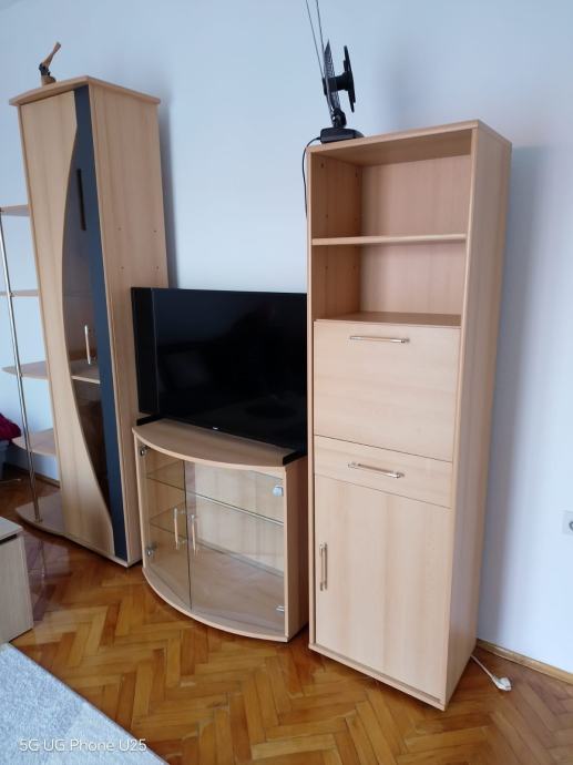 Prodajem kutnu garnituru, stol za dnevni boravak i trodjelni regal za dnevni boravak. Sve sa slika osim TV-a za 400 eura ( cijena nije fixna )