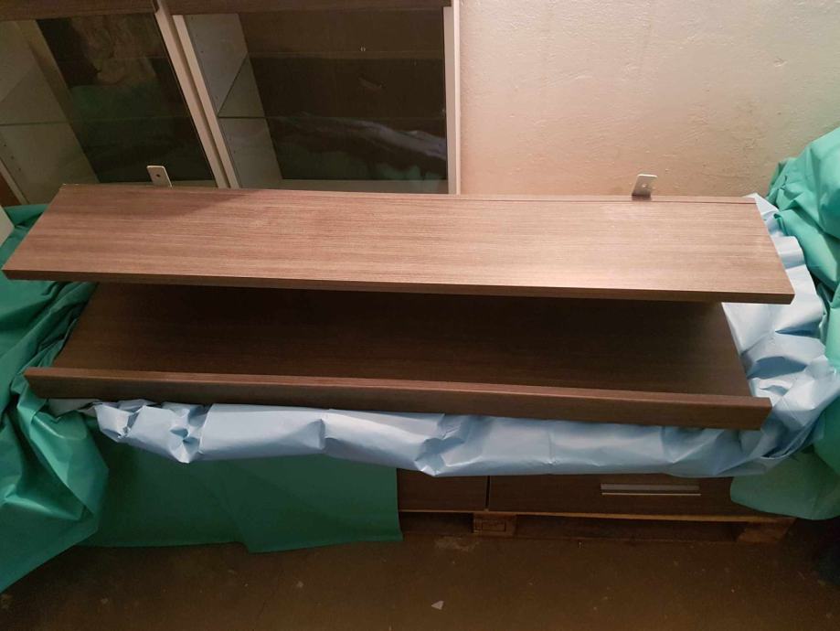 Prodajem garnituru za dnevni boravak (3 regala, 2 tv stalka i polica) kupljenu 2020. godine u Emmezeti u odličnom stanju. Dimenzije regala su 120(v)x50(š)x32(d), manjeg tv stalka 120(d)x50(š)x36(v), većeg tv stalka 170(d)x50(š)x36(v) dok je polica iznad tv stalka dimenzija 120(d)x22(š)x25(v). Cijena garniture je 170€.